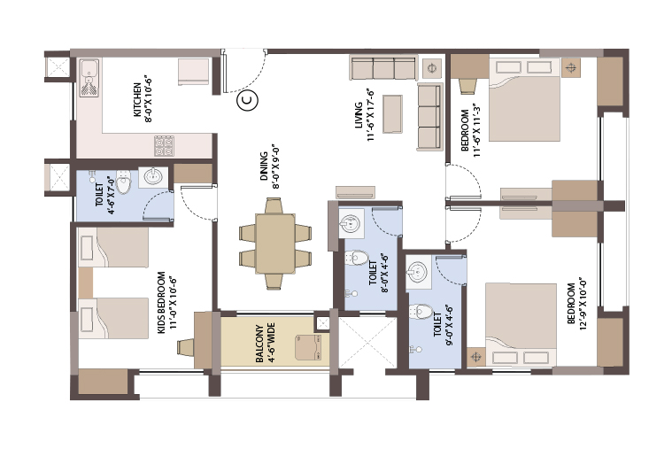 With 6 towers and hyper-retail area, SPACIA will have more than 400 apartments of 3 and 4 BHK in G+12 buildings.